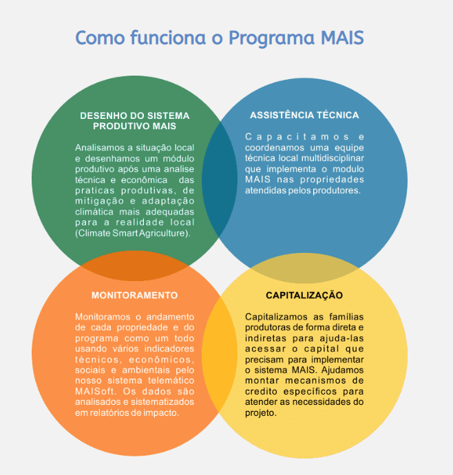 O Programa Mais é mais uma das grandes ideias finalistas da Competição que estamos apresentando em nosso blog nas últimas semanas. Seu objetivo é implementar práticas sustentáveis e resilientes aos efeitos das mudanças climáticas nos biomas e nas cadeias de valor agropecuárias mais diversas. Tudo isso incluindo agricultores familiares em cadeias produtivas estruturadas com resiliência climática, sustentabilidade e viabilidade econômica para todos os atores envolvidos. Hoje, o programa está disponível para clientes corporativos, instituições públicas e financeiras e organizações não governamentais.